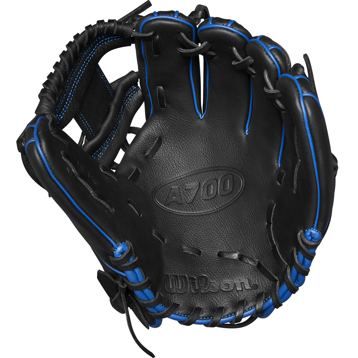 Step onto the field with confidence using the Wilson A700 PF 11.25" Baseball Glove. Designed for beginning and pre-teen ballplayers, this glove offers a snug, secure fit perfect for smaller hands. The sleek black and blue colorway, combined with an H