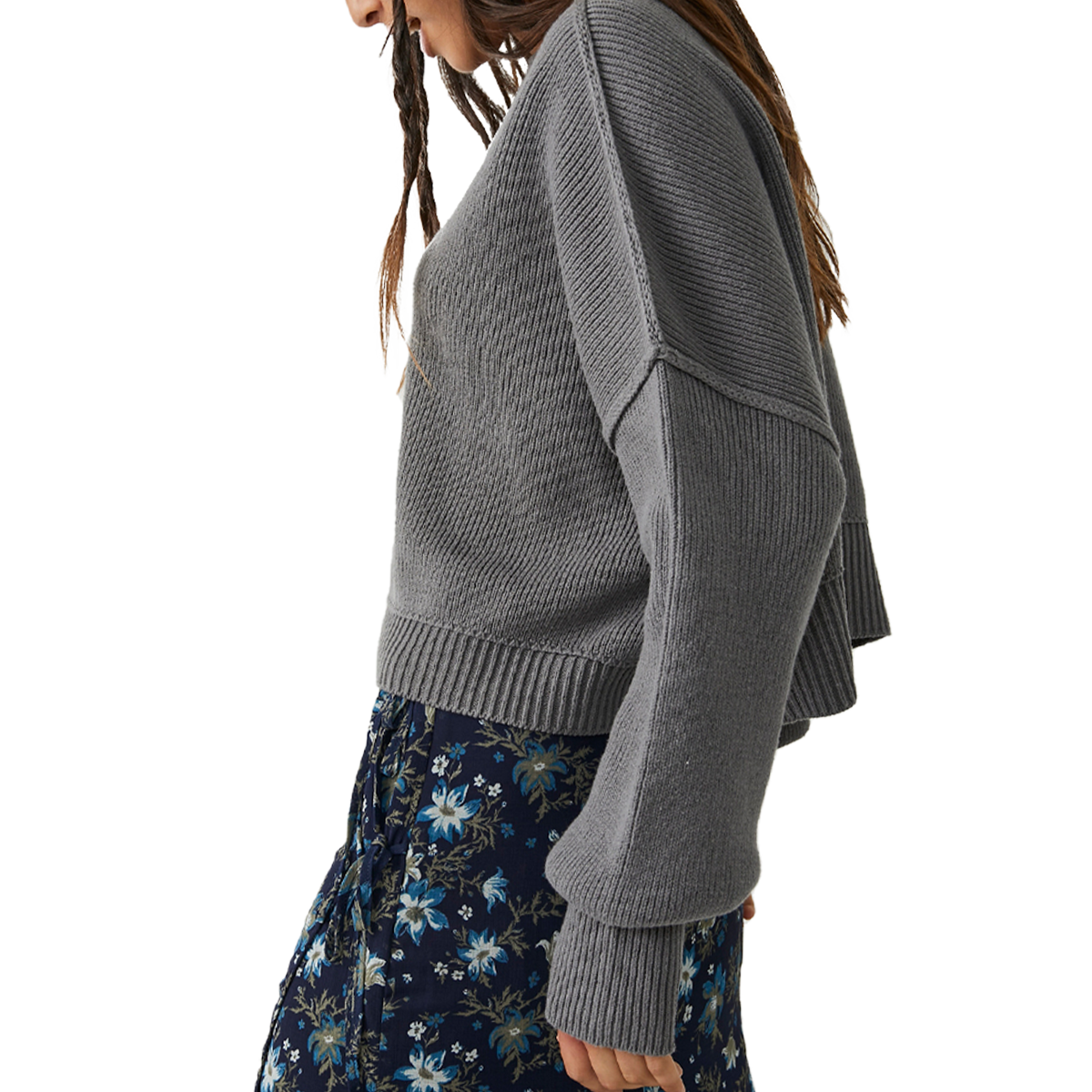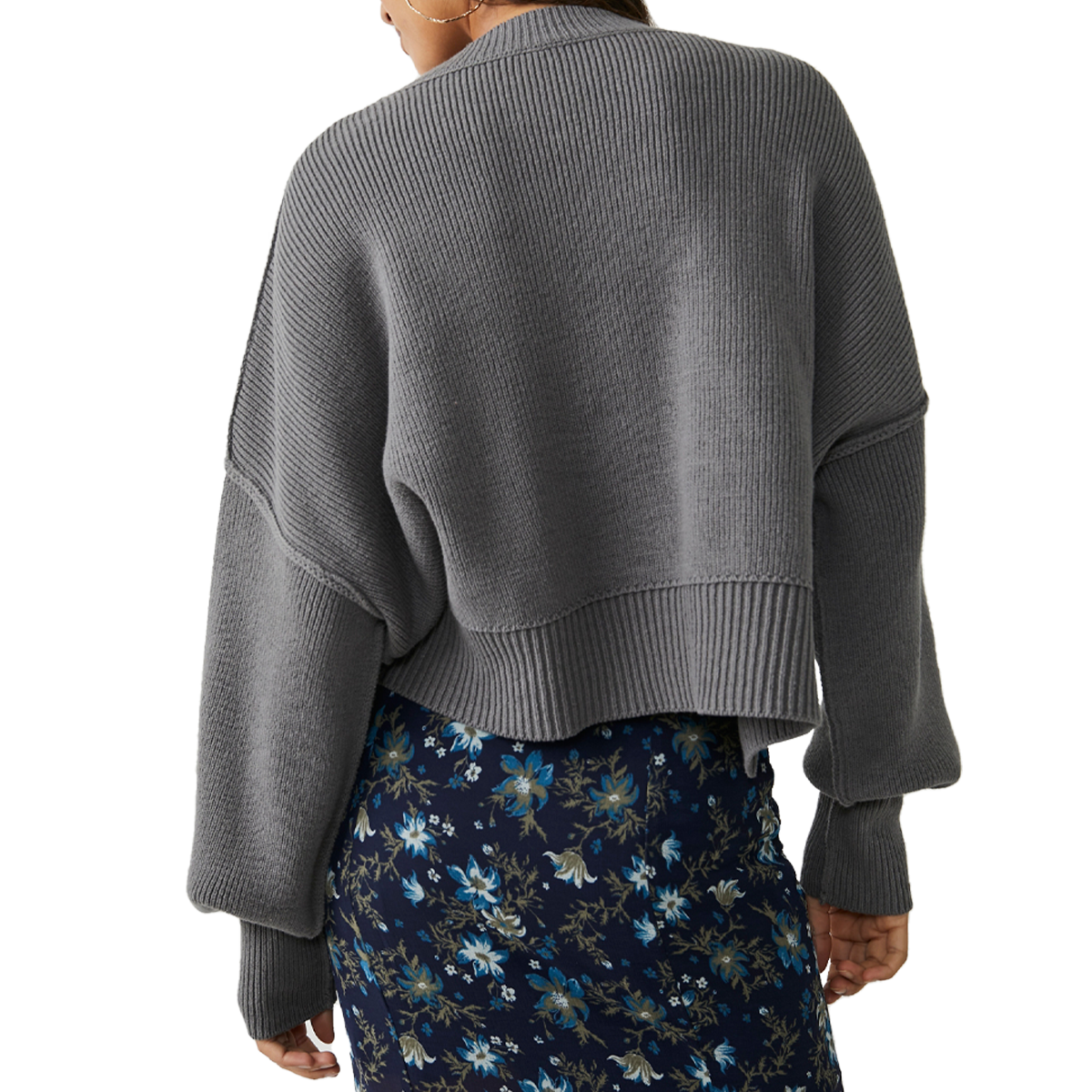 So cool and classic, this forever essential pullover sweater is featured in a slouchy, cropped silhouette and ribbed knit fabrication with mock neckline, defined seaming, and slightly exaggerated sleeves for added shape. Sure to be your top pick to pair with staple denim, a tailored trouser, or sweet skirt, this timeless pullover is the ideal throw-on-and-go sweater to add to your classics collection.