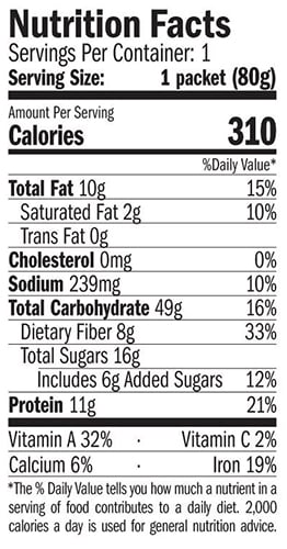 • Each pouch has between 310 and 325 calories for energy